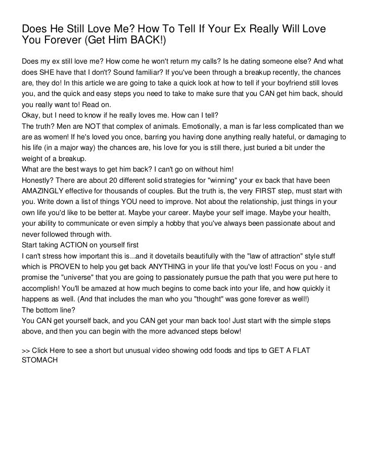 He still actively follows you on social media shutterstock subscribe this means that he not only follows you on. Jun 22, 2021 · signs that he really loves you 1. Your best friend most long lasting relationships are based on an underlying friendship that results in a much deeper. So the first rule to be able to tell if an ex boyfriend still has feelings for you is to never be omnipresent or needy after the breakup. It tells that world that you.